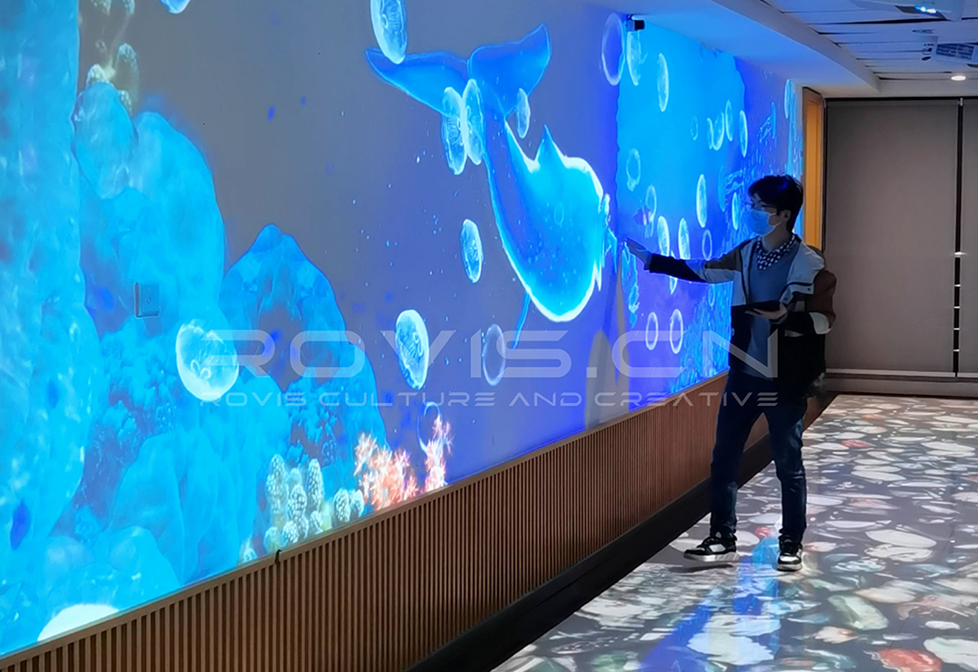 美妙的视觉艺术效果和奇幻的动作反馈,通过墙面互动投影的画面和声音吸引学生用户驻足停留,甚至还能将知识文化融入其中,打造成为一个具有趣味的多媒体技术互动展项,以增强休闲娱乐的内在吸引力。