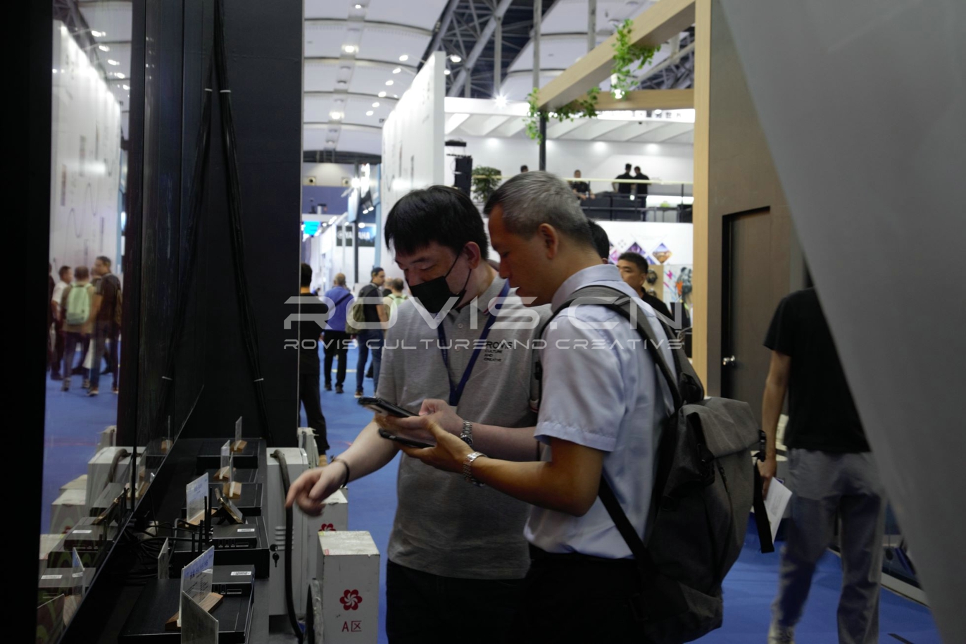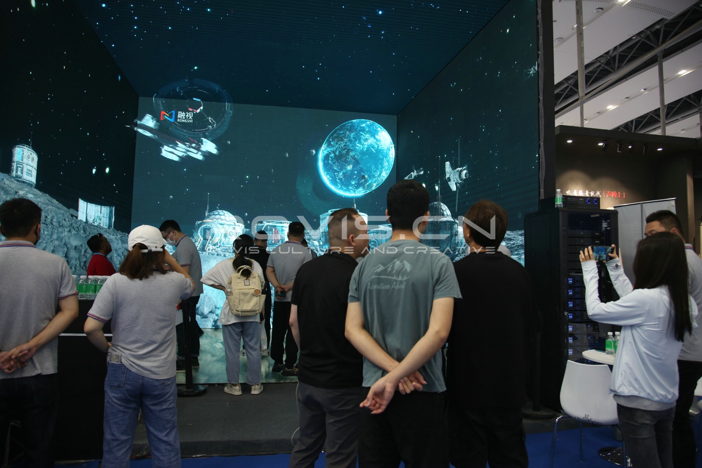 本次Prolight + Sound 2023,融视以沉浸式CAVE空间为主题,展示了蘑菇世界、重返地球、海底世界、星际大战、过山车、热带雨林等沉浸式素材。身临其境的视觉体验,吸引了众多参观者驻足,前来咨询的客户络绎不绝,合作意向洽谈热烈。